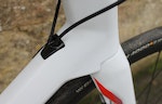 Much the same applies with the fork, allowing enough flex but with extra beef integrated around the steerer tube and headtube areas to maintain stiffness. With the frontal area so important for aerodynamics, the tube shapes are clearly tapered, too.
