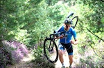 The Devil’s Punch Bowl sinks steeply into the Surrey countryside and, as well as providing numerous technical descents, includes unrideable pitches lined with roots, ruts and rocks. The kink in the toptube comes close to the bike’s balance point and helps the Inflite to sit naturally on the shoulder when hopping over logs, fallen trees and up steep, muddy banks. It also provides an effective grab handle when lifting the bike.