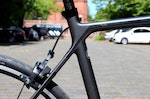 The chainstays have been lengthened by 5mm to 415mm to account for the slightly shorter reach and to ensure the wheelbase is not too compact, but it’s still relatively tight at 989mm (9mm longer than the Ultimate series on a medium) and that keeps the handling stable but quick. The headtube angle on a medium bike has also been slackened by 0.85 degrees to 72.4 degrees. Those numbers vary across the seven sizes (for example, the wheelbase is shorter on the Endurace than the Ultimate in sizes L-XXXL, and the head and seattube angles are the same – so check the Canyon website for the full geometry table) but overall reflect that Canyon still pitch the Endurace as a race bike, but with a more forgiving and upright geometry than elsewhere in the range.