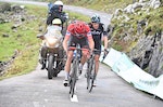 The gap was just 1’20” over the summit of the first climb, the Alto de la Cobertoria, with the pace high in the peloton behind as Team Sky shut down an attempted attack by Vincenzo Nibali and his Bahrain-Merida team-mates.
