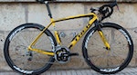 Satisfied that the top cap is sufficiently tight, he checks the alignment of the handlebars, using the dropouts as a siting point, and retightens the stem pinch bolts.