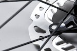 In reality, you’re talking about marginal gains – if any – in aerodynamic terms since although the alloy disc-specific rim has a rounded profile it’s only 28mm deep. What you’re really buying these wheels for is the weight as they’re impressively light for disc brake wheels at only 1,469g for the set.