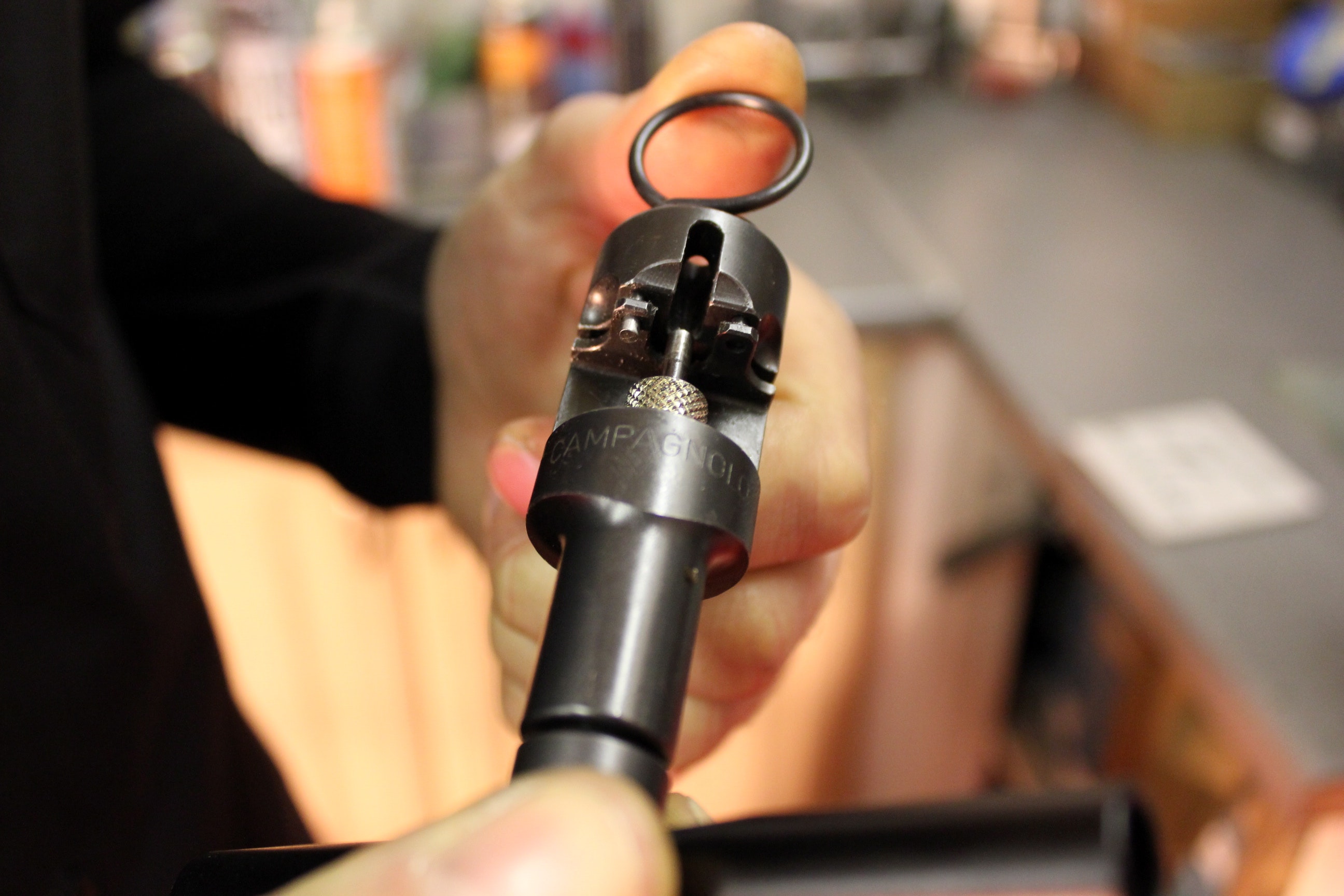 Campagnolo's chain tool has a retention system to prevent the chain from bowing when the joining pin is inserted