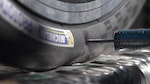 Cornering grip was tested in various ways, one of which involves a Michelin test rider riding in circles on a sopping wet test track, while another relies on a machine to press the tyre, mounted on a wheel, onto a section of tarmac elevated to 20° and adding weight until the tyre slips.