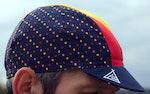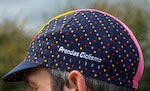 The last item we’re featuring here is the cap – it’s bold and striking, with pink, yellow and red dots throughout, and blocks of colour running up the middle. I found it slightly large for my head (I wear a medium helmet), but I have cropped hair and other riders I know found the fit to be generally ok. It’s a polyester and cotton blend with anti-bacterial tape to absorb sweat. The peak sits happily up or down, depending on your preference – down for the subtle Prendas logo or tipped up for the dot pattern. If you want to get the full matched look offered by the Grand Tour collection then this, combined with the socks, finishes it off – otherwise it’s a bold cap to wear with other kit.