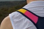 The bold graphic pattern hints at the Grand Tours, with the colours for the leaders’ jerseys accompanied by the Italian word for each sitting on the relevant block in a slight tinted colour. There’s also a dot repeat pattern on the neck and the back pockets. Although quite striking and bold, the design isn’t garish or over bearing – but it’s almost a shame the back is plain navy blue as the additional colour on the back would add some extra visibility.