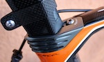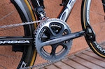 This slick integrated seat clamp also helps the Orca cut through the wind – and it looks very nice, too. The black stripe of electrical tape marks Anton’s saddle height, while the carbon fibre mount is design to hold his race number