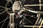 The chainset is at the heart of the new R9100 gruppo and while Shimano have stayed loyal to the four-arm design first unveiled as part of the previous generation Dura-Ace, much has changed. First of all, it’s lighter (a theme across the groupset), albeit by only 7g, but, more significantly, the Hollowtech II crank arms are significantly bigger and have an asymmetric design, while the the outer chainring has been reinforced, in a move said to improve stiffness and shifting performance.