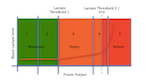 The domains are referred to as moderate, heavy and severe, and physiological thresholds separate these three domains. You may have actually heard of lactate threshold – but there are, in actual fact, two lactate thresholds.