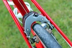 But perhaps the most novel feature of the brake system are the so-called ‘Vector Wings’ on the fork. Turn the handlebar sharply left or right and the corresponding wing opens to protect the brakes from the elements.